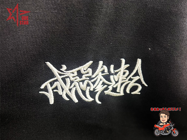 今回は、なんと前面の成悪参連合をなんと刺繍にしました!